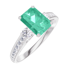 « L'ATELIER » NR. 166828Ring Witgoud 9 karaat - Smaragd Rechthoekig 0.7 Karaat - Aanleunende edelstenen Diamant - Setting Diamant