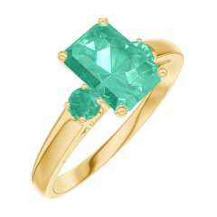 Ring Geelgoud 18 karaat - Smaragd Rechthoekig 0.7 Karaat - Aanleunende edelstenen Smaragd