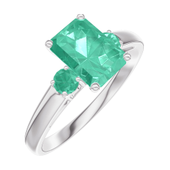 Ring Witgoud 9 karaat - Smaragd Rechthoekig 0.7 Karaat - Aanleunende edelstenen Smaragd