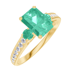 « L'ATELIER » NR. 166886Ring Geelgoud 9 karaat - Smaragd Rechthoekig 0.7 Karaat - Aanleunende edelstenen Smaragd - Setting Diamant