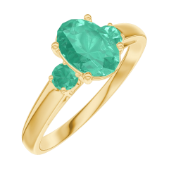 Ring Geelgoud 18 karaat - Smaragd Ovaal 0.7 Karaat - Aanleunende edelstenen Smaragd