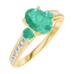 « L'ATELIER » NR. 166985Ring Geelgoud 18 karaat - Smaragd Ovaal 0.7 Karaat - Aanleunende edelstenen Smaragd - Setting Diamant