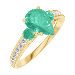 « L'ATELIER » NR. 167085Ring Geelgoud 18 karaat - Smaragd Peer 0.7 Karaat - Aanleunende edelstenen Smaragd - Setting Diamant