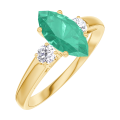 « L'ATELIER » NR. 167121Ring Geelgoud 18 karaat - Smaragd Markies 0.7 Karaat - Aanleunende edelstenen Diamant