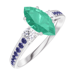 « L'ATELIER » NR. 167136Ring Witgoud 9 karaat - Smaragd Markies 0.7 Karaat - Aanleunende edelstenen Diamant - Setting Blauwe saffier