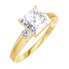Ring Geelgoud 18 karaat - Diamant Prinses 1 Karaat - Aanleunende edelstenen Diamant