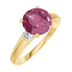 Ring Geelgoud 9 karaat - Robijn rond 1 Karaat - Aanleunende edelstenen Diamant