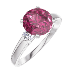 « L'ATELIER » NR. 167824Ring Witgoud 9 karaat - Robijn rond 1 Karaat - Aanleunende edelstenen Diamant 4.9