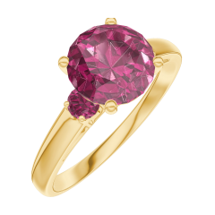Ring Geelgoud 9 karaat - Robijn rond 1 Karaat - Aanleunende edelstenen Robijn