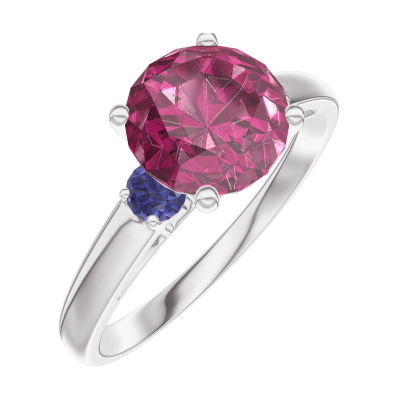 « L'ATELIER » Nº167863Ring Witgoud 18 karaat - Robijn rond 1 Karaat - Aanleunende edelstenen Blauwe saffier 4.9