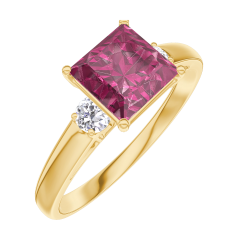 « L'ATELIER » NR. 167922Ring Geelgoud 9 karaat - Robijn Prinses 1 Karaat - Aanleunende edelstenen Diamant