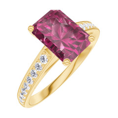 Ring Geelgoud 18 karaat - Robijn Rechthoekig 1 Karaat - Setting Diamant