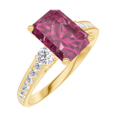 « L'ATELIER » NR. 168026Ring Geelgoud 9 karaat - Robijn Rechthoekig 1 Karaat - Aanleunende edelstenen Diamant - Setting Diamant 4.5 (8)
