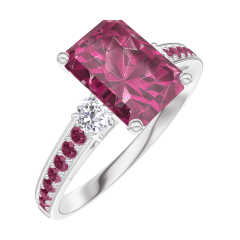 « L'ATELIER » NR. 168032Ring Witgoud 9 karaat - Robijn Rechthoekig 1 Karaat - Aanleunende edelstenen Diamant - Setting Robijn 4.5