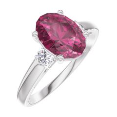 « L'ATELIER » NR. 168124Ring Witgoud 9 karaat - Robijn Ovaal 1 Karaat - Aanleunende edelstenen Diamant 4.8