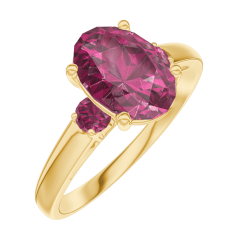 Ring Geelgoud 18 karaat - Robijn Ovaal 1 Karaat - Aanleunende edelstenen Robijn