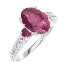 « L'ATELIER » NR. 168148Ring Witgoud 9 karaat - Robijn Ovaal 1 Karaat - Aanleunende edelstenen Robijn - Setting Diamant 4.8