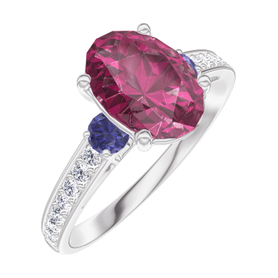 « L'ATELIER » Nº168167Ring Witgoud 18 karaat - Robijn Ovaal 1 Karaat - Aanleunende edelstenen Blauwe saffier - Setting Diamant 4.8