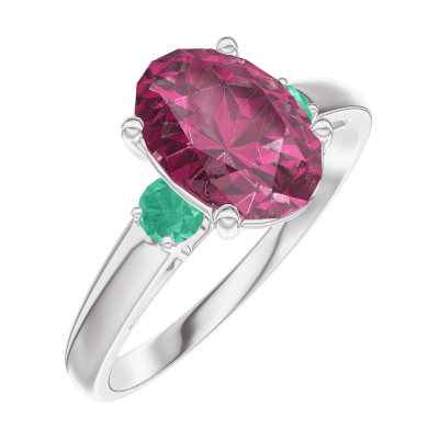 « L'ATELIER » Nº168184Ring Witgoud 9 karaat - Robijn Ovaal 1 Karaat - Aanleunende edelstenen Smaragd 4.8