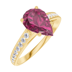 « L'ATELIER » NR. 168206Ring Geelgoud 9 karaat - Robijn Peer 1 Karaat - Setting Diamant