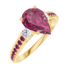« L'ATELIER » NR. 168230Ring Geelgoud 9 karaat - Robijn Peer 1 Karaat - Aanleunende edelstenen Diamant - Setting Robijn