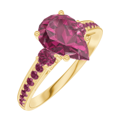 « L'ATELIER » NR. 168250Ring Geelgoud 9 karaat - Robijn Peer 1 Karaat - Aanleunende edelstenen Robijn - Setting Robijn
