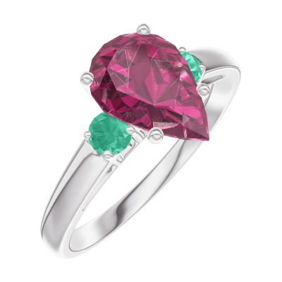 « L'ATELIER » Nº168283Ring Witgoud 18 karaat - Robijn Peer 1 Karaat - Aanleunende edelstenen Smaragd