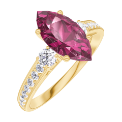 « L'ATELIER » NR. 168326Ring Geelgoud 9 karaat - Robijn Markies 1 Karaat - Aanleunende edelstenen Diamant - Setting Diamant