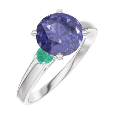 « L'ATELIER » Nº168484Ring Witgoud 9 karaat - Blauwe saffier rond 1 Karaat - Aanleunende edelstenen Smaragd 4.9