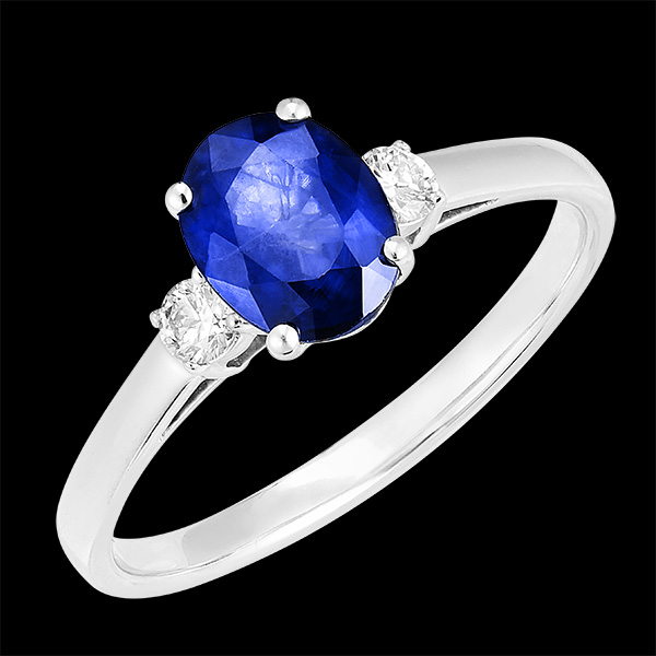 « L'ATELIER » NR. 168723Ring Witgoud 18 karaat - Blauwe saffier Ovaal 1 Karaat - Aanleunende edelstenen Diamant 4.8