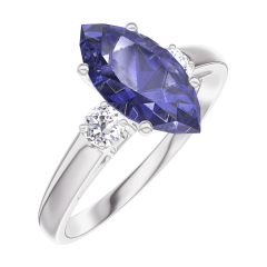 « L'ATELIER » NR. 168924Ring Witgoud 9 karaat - Blauwe saffier Markies 1 Karaat - Aanleunende edelstenen Diamant