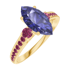 « L'ATELIER » NR. 168950Ring Geelgoud 9 karaat - Blauwe saffier Markies 1 Karaat - Aanleunende edelstenen Robijn - Setting Robijn