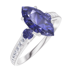 « L'ATELIER » NR. 168968Ring Witgoud 9 karaat - Blauwe saffier Markies 1 Karaat - Aanleunende edelstenen Blauwe saffier - Setting Diamant