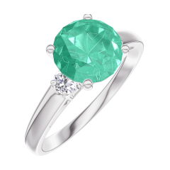 Ring Witgoud 18 karaat - Smaragd rond 1 Karaat - Aanleunende edelstenen Diamant