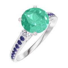 « L'ATELIER » NR. 169035Ring Witgoud 18 karaat - Smaragd rond 1 Karaat - Aanleunende edelstenen Diamant - Setting Blauwe saffier 4.7
