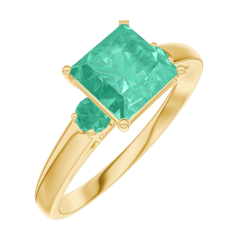 « L'ATELIER » NR. 169182Ring Geelgoud 9 karaat - Smaragd Prinses 1 Karaat - Aanleunende edelstenen Smaragd