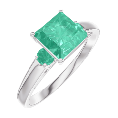 « L'ATELIER » NR. 169184Ring Witgoud 9 karaat - Smaragd Prinses 1 Karaat - Aanleunende edelstenen Smaragd
