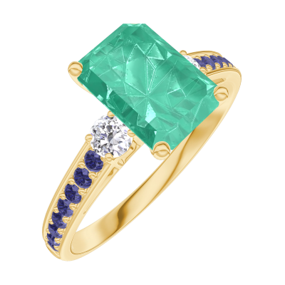 « L'ATELIER » Nº169233Ring Geelgoud 18 karaat - Smaragd Rechthoekig 1 Karaat - Aanleunende edelstenen Diamant - Setting Blauwe saffier 4.6