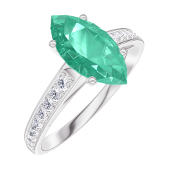 « L'ATELIER » NR. 169508Ring Witgoud 9 karaat - Smaragd Markies 1 Karaat - Setting Diamant