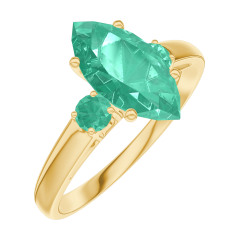 « L'ATELIER » NR. 169582Ring Geelgoud 9 karaat - Smaragd Markies 1 Karaat - Aanleunende edelstenen Smaragd