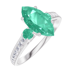 « L'ATELIER » NR. 169588Ring Witgoud 9 karaat - Smaragd Markies 1 Karaat - Aanleunende edelstenen Smaragd - Setting Diamant