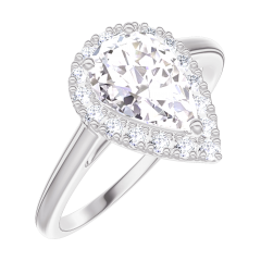« L'ATELIER » NR. 170195Ring Witgoud 18 karaat - Diamant Peer 0.5 Karaat - Halo Diamant 5 (13)