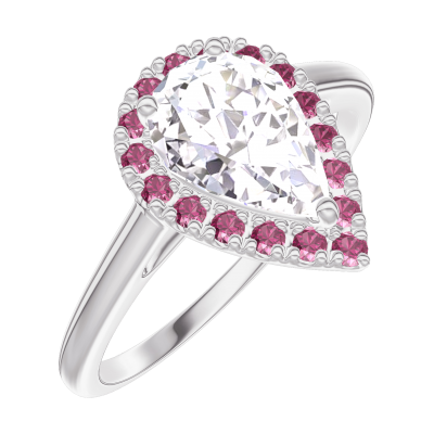 « L'ATELIER » Nº170211Ring Witgoud 18 karaat - Diamant Peer 0.5 Karaat - Halo Robijn 5