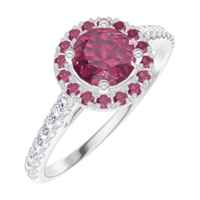 « L'ATELIER » Nº170311Ring Witgoud 18 karaat - Robijn rond 0.5 Karaat - Halo Robijn - Setting Diamant 5 (18)
