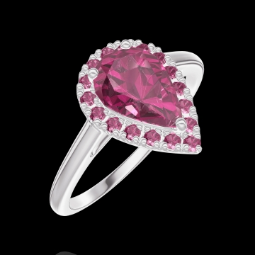 « L'ATELIER » Nº170499Ring Witgoud 18 karaat - Robijn Peer 0.5 Karaat - Halo Robijn 5