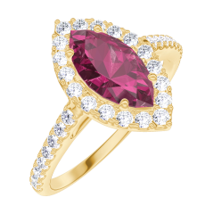 « L'ATELIER » NR. 170533Ring Geelgoud 18 karaat - Robijn Markies 0.5 Karaat - Halo Diamant - Setting Diamant