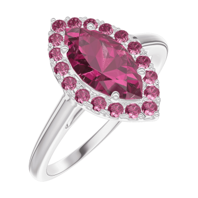 « L'ATELIER » Nº170548Ring Witgoud 9 karaat - Robijn Markies 0.5 Karaat - Halo Robijn