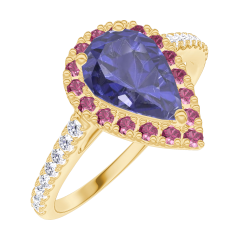 « L'ATELIER » NR. 170789Ring Geelgoud 18 karaat - Blauwe saffier Peer 0.5 Karaat - Halo Robijn - Setting Diamant 5