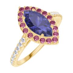 « L'ATELIER » NR. 170837Ring Geelgoud 18 karaat - Blauwe saffier Markies 0.5 Karaat - Halo Robijn - Setting Diamant