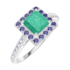 « L'ATELIER » NR. 170951Ring Witgoud 18 karaat - Smaragd Prinses 0.5 Karaat - Halo Blauwe saffier - Setting Diamant 4.6